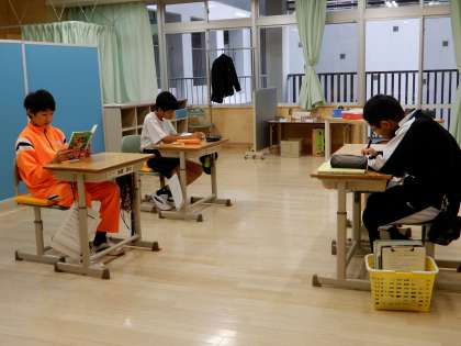 本日の道徳は、「自分で考え実行し責任を持つ」です。3枚目の写真は朝トレ後の読書の様子です。