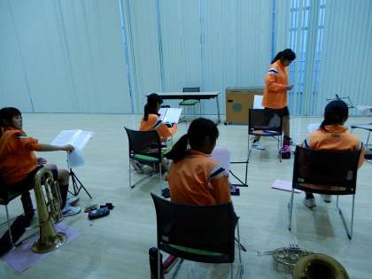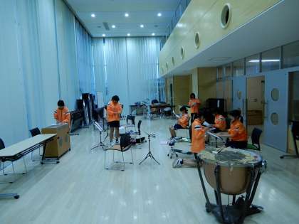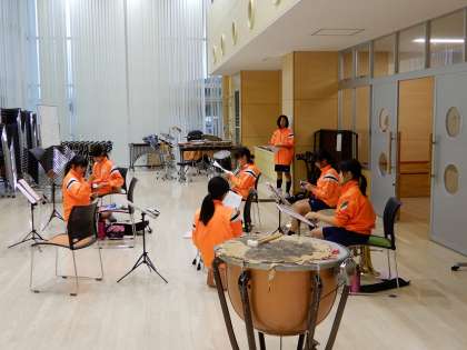吹奏楽部です。吹奏楽部は技術的なこともあり部員で活動しています。