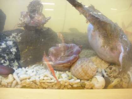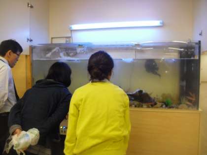 水槽にメンダコやアンコウもやってきました。子どもも大人もみんな喜んで見ています。