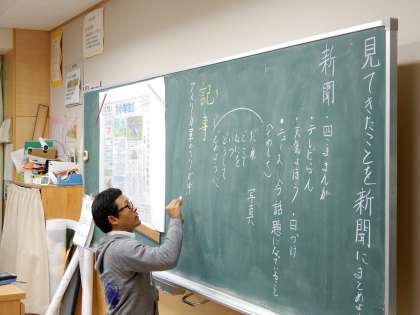 見てきたことを新聞にまとめるため、小学生新聞の構成を学習しています。