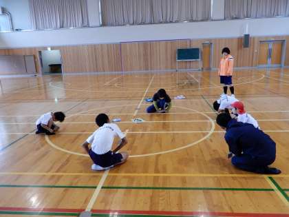 一時間目は、体育館で体幹トレーニングです。二時間目は読書をしています。三枚目は、校長室で英語の暗唱スピーチをしています。