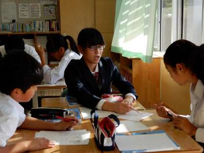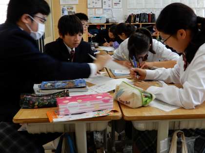 「日本は律令国家になり豊かになったのか」調べたことを仲間に説明しています。