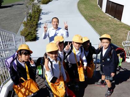 本日は、午前中で子どもたちは下校です。カマキリがいて…、大騒ぎでした。