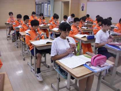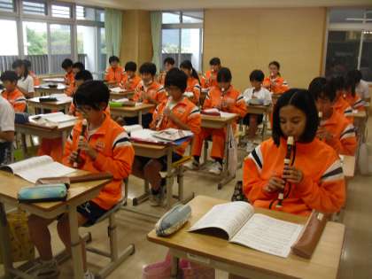 7年生は音楽でリコーダー演奏を行っていました。みんなで「海の見える街」を上手に演奏しました。