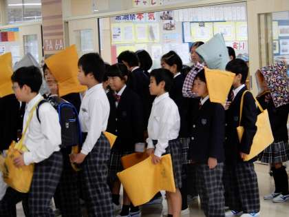 7時48分に地震発生の避難訓練を実施しました。登校後(登校中)、突発的に発生した場合を想定した訓練を実施しました。臨場感をもって素早くコモンスペースに志部ごと避難ができました。