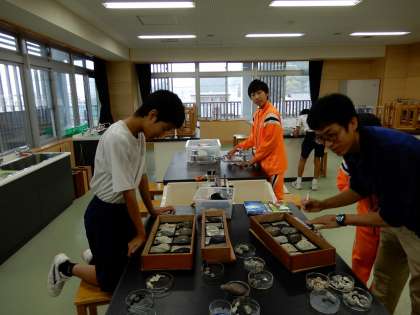 1枚目の写真は、言語読解で学習したことを質問しているところの様子です。様々な石の分類をしています。石の特徴をよく観察しています。