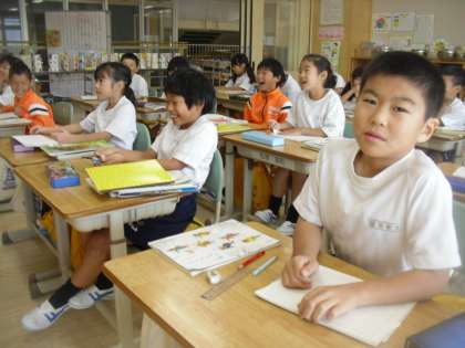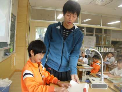 2年生は国語で言葉のきまりを学習していました。授業の導入として。「はしに立つ」という言葉を絵に表していました。
