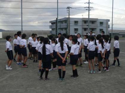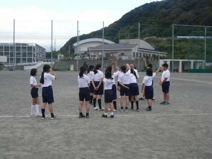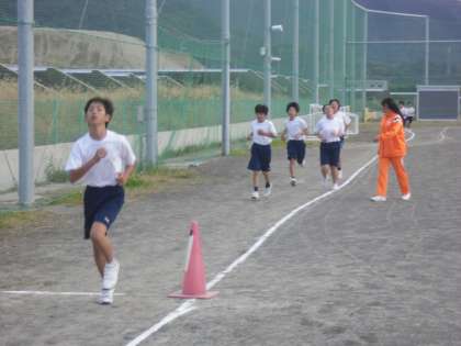 走り終わった後、5・6年生はクラスごと、7・8年生は部活動ごと整理体操をして終了です。