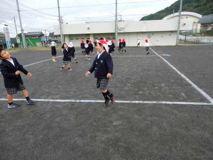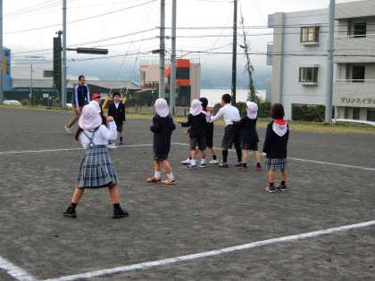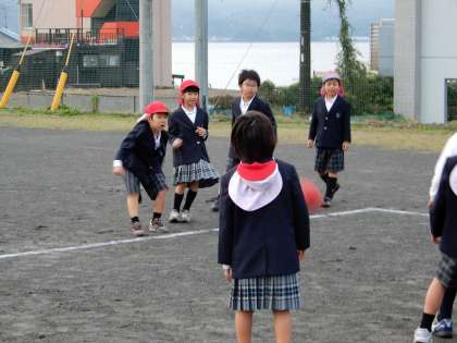 1年生は、ドッジボールを楽しんでいます。4年生も加わって楽しそうです。