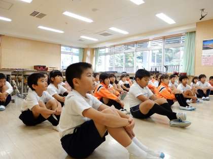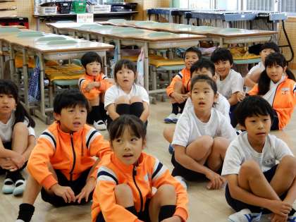 「かぼちゃ」の歌です。大きながぼちゃができました。どのくらい…、と音や響きの違いに気付いたり、音の出し方を工夫したりして、イメージに合った音楽を表現できるように楽しく学習しています。