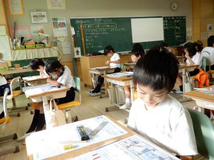 算数のテストを実施中です。テストでわからなかったところは、もう一度見直しをしておきましょう。