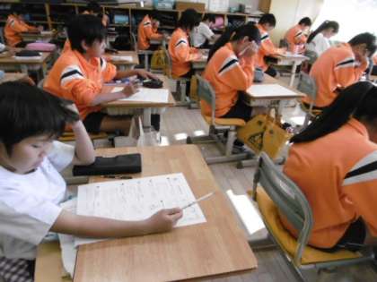 ミシンについてのテストを行っています。とても落ち着いた様子で受けています。
