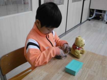 数やお金の学習をしています。2人ともとても落ち着いて学習できています。