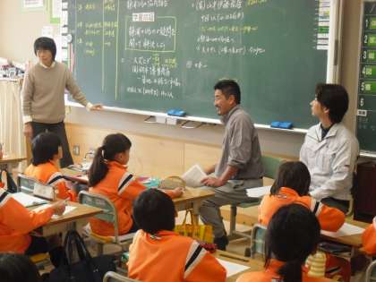 ひもの組合の方々に来ていただき、「静浦のひものの疑問を解決しよう」という学習問題で日頃から思っていた疑問や質問を積極的に訪ね、理解を深めています。一匹を早い人で7秒くらいでひらいてしまうそうです・・・。