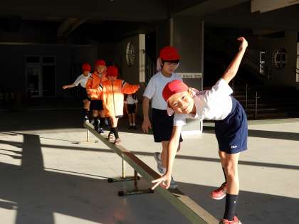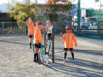 今日も元気に外で朝トレ運動です。最近は一輪車の練習をしている子が増えました。