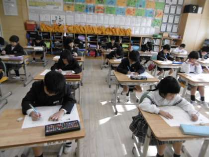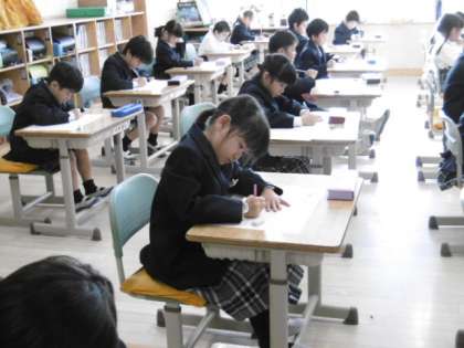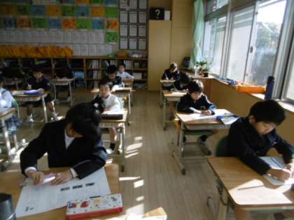 国語の期末テストを受けています。みんな頑張っています。保護者の皆様、テスト勉強へのご支援、ありがとうございました。