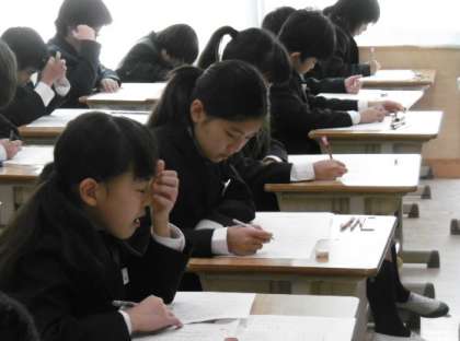 国語の期末テストを受けています。5Aも全員出席です。真剣な表情がたくさん見られます。テストが返ってくるのが楽しみな人が多いのではないでしょうか。