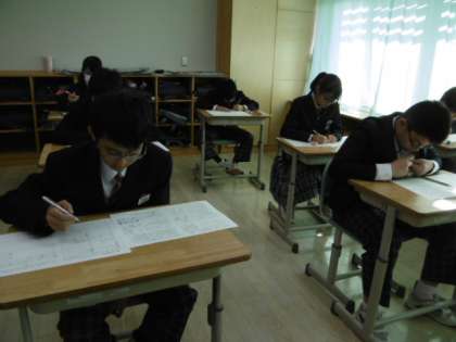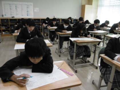 7Aは理科の期末テストを受けています。7Aは昨日から4階の大志部フロアーで期末テストを行っています。7A,8A,9Aが横並びになって2日間の期末テストを頑張っているところです。