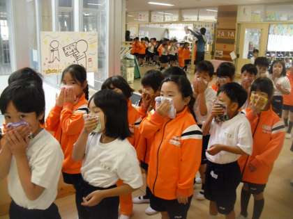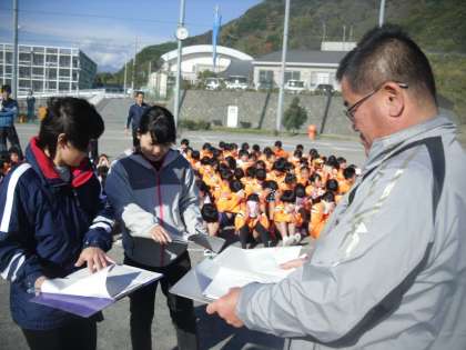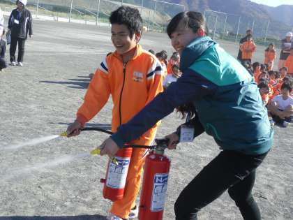 火災避難訓練の様子です。みんな真剣にがんばっています。