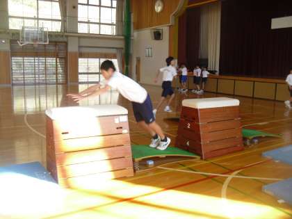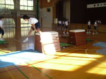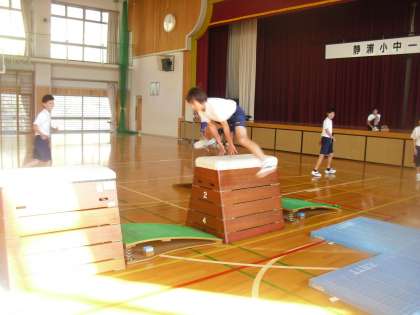 8年生は体育で跳び箱運動を行っていました。みんな技の向上のために一生懸命取り組んでいます。