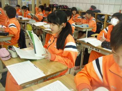 7年生は国語の学習を行っていました。今日は「竹取物語」を読み進めました。