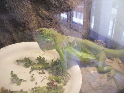 3階コモンスペースで生活している本校のアイドル獣「イグアナのミチさん」です。ミチさんも元気に生活しています。