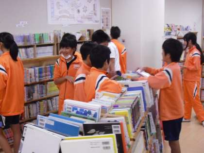 今朝の学校図書館の様子です。朝から各学年の児童生徒が図書館を利用しています。
