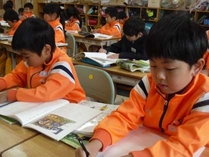 2年生は国語で「かさこじぞう」を学習しています。今日は1の場面を読んで、お年寄りの様子や暮らしについて話し合いました。