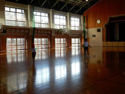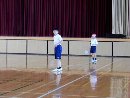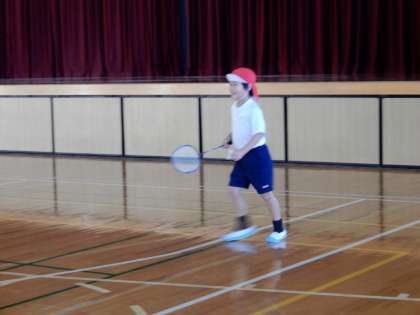 体育館でトレーニング後に、バトミントンで体幹を鍛えています。