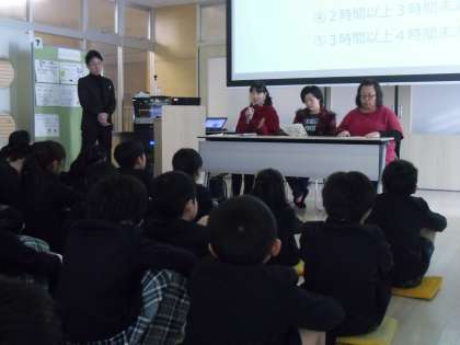 最後にPTA会長様を進行役に、保護者代表の3名の方にパネラーになっていただき、健康的な生活とSNSとの付き合い方について、様々なご意見をいただきました。大変有意義な会となりました。ご参加いただきました保護者の皆様、ご協力いただきましてありがとうございました。
