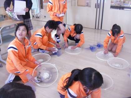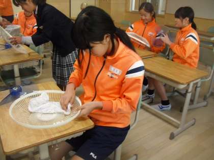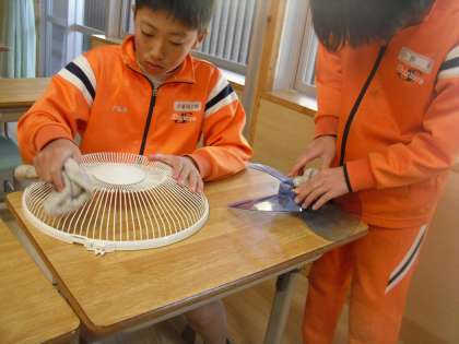 どの子も扇風機カバーやファンの汚れをきれいに取り除いています。