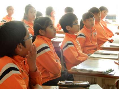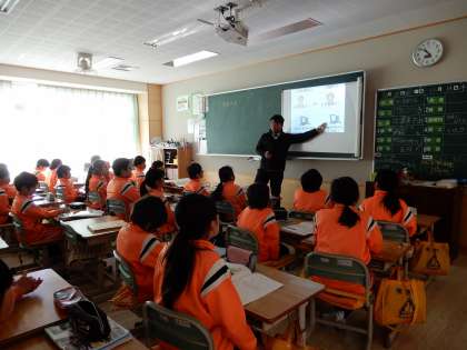 工業のまとめです。みんな集中して崇範先生の説明を聞いています。