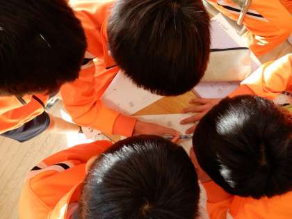 星型の問題を解くために、自分たちが持っている知識を出し合っています。各グループからいい意見が聞こえてきます。
