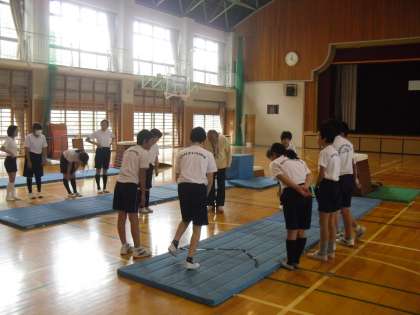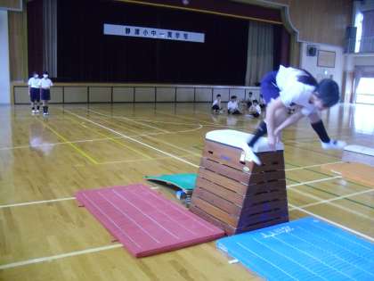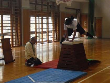 最後に、全員が自分の選んだ連続技を発表し、スムーズにつなげることを意識して披露しました。いざ自分の番になり、緊張でなかなか跳べない仲間に対し、級友みんなが温かな声をかけて勇気づけ、それに後押しされて立派に跳ぶことができたというすてきな場面も見られました。跳び箱を跳ぶという授業の中に、温かな学級の姿を垣間見ることができました。