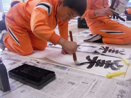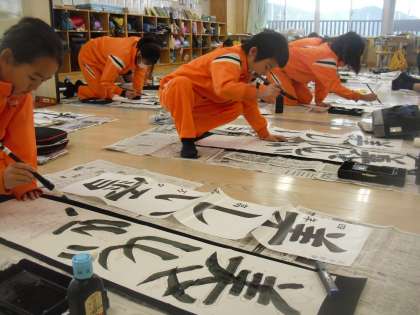 3・4年生が合同で書写を行い、書き初めの練習を行いました。