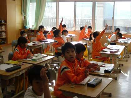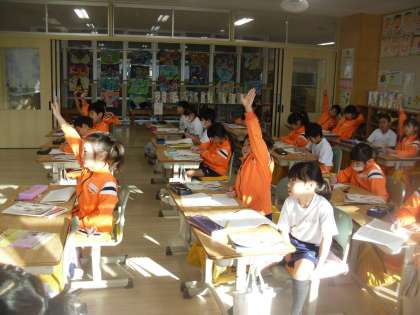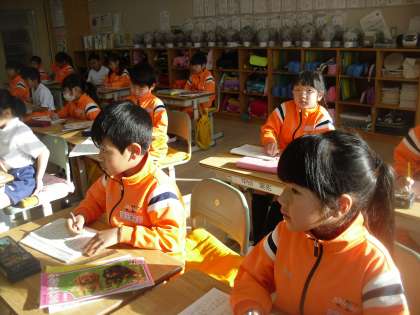2年生は国語で「ことばのきまり」について学習を進めました。「たかひろ先生は、本を読む、読んでいる、読み始めた、読んだ」など、読むがどのように変化するかを考え、意見交流しました。