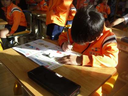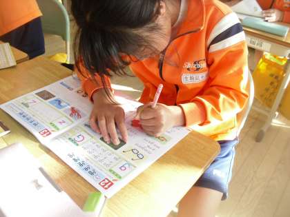 3年生は国語でローマ字について学習しています。みんなワークノートを丁寧に書いていました。