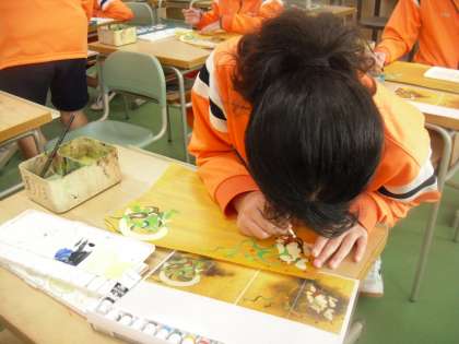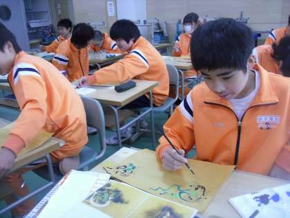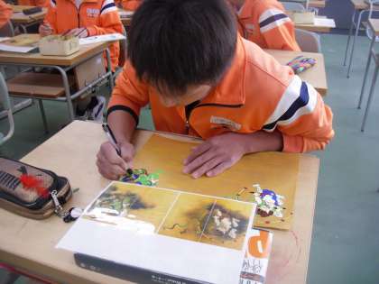 8年生は美術で「風神雷神図」の模倣にチャレンジしていました。なかなか上手です。