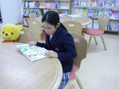 三者面談を待つ児童は、学校図書館を利用して静かに読書していました。