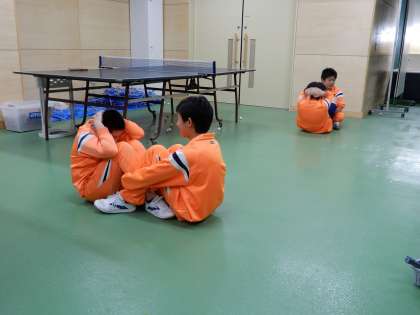 バスケットボール部、野球部、卓球部の活動の様子です。外は雨ですが、空いている部屋、階段、体育館等の室内を上手に活用し、筋トレや体幹トレーニングを頑張っています。