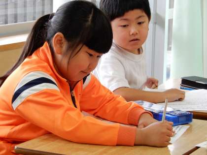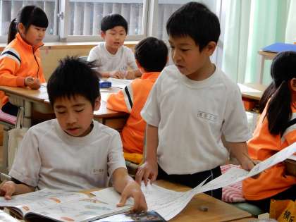 「発表会の準備をしよう」1年生との遊びランドのまとめをして、プレゼングランプリをします。グループで準備をしています。