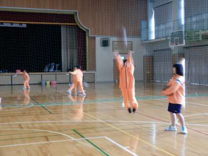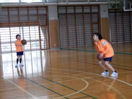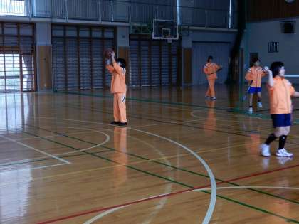 ○女子バスケットボール部です。スリーポイントシュート練習です。