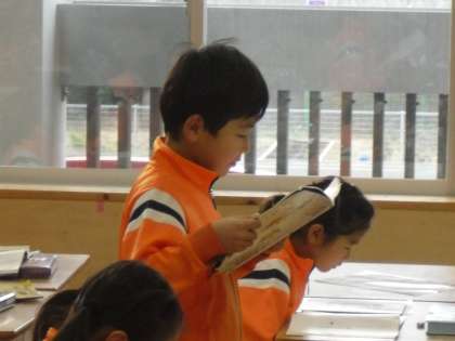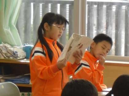 「とべとべ回れ」をみんなで読みながら、作り方の順序をわかりやすく表現する方法を学んでいます。