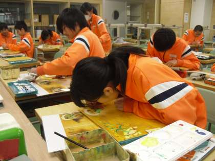風神雷神の名画を模写しています。この後、広告の写真を切り貼りしコラージュを行い、現代風のアート作品に仕上げていきます。