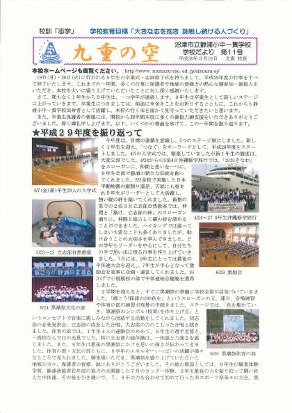 本日、学校だより第11号を配布しました。ホームページ配布文書のコーナーにも学校だよりを載せましたのでご覧ください。