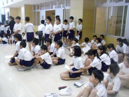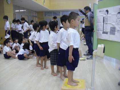 本日、全学年で身体測定を実施しました。2年生と9年生、3年生と8年生は上級生が下級生を見ながら、一緒に行動していました。