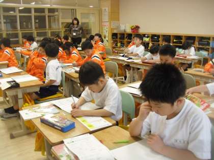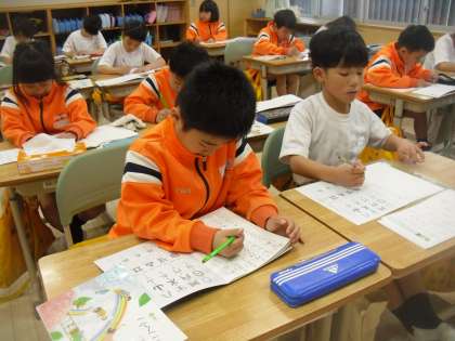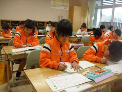 2年生は国語で漢字ドリルを使いながら一年生の復習をしました。