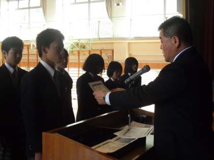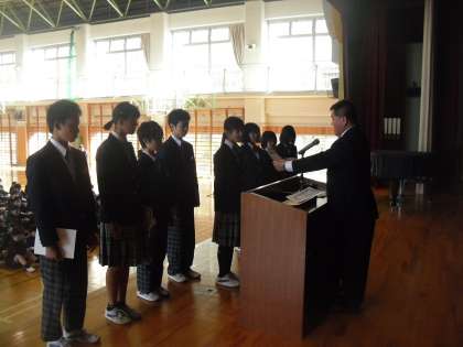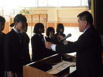 本日、朝礼(任命)を行いました。最初に自治会執行部役員の任命です。