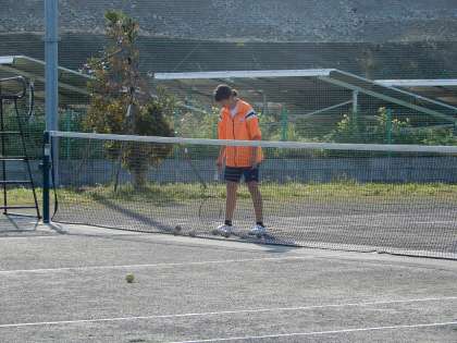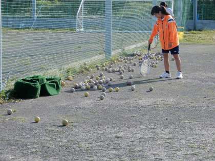ソフトテニス部です。基本練習を大切にしています。各部、春の大会に向け朝練習にも熱が入ります。
