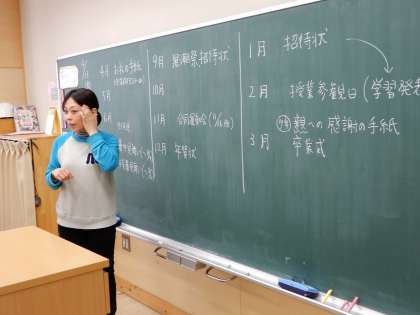 手紙の書き方についての学習です。黒潮祭への案内やお世話になった人への案内などを年間予定を見ながら確認しています。